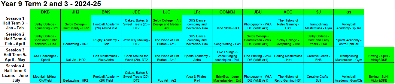 During Spring and Summer terms students are assigned 4 different enrichment activities from their choices. We hope that the students will be able to find something that appeals to their personal interests or gives them the opportunity to develop new skills. Through this time students also have the opportunity to work with tutors from Selby College and experience courses from the college in Sport and Public Services, Art, Design & Media, Construction, and Hair/Beauty & Catering, computing, Childcare and Early Years, Business and Tourism.