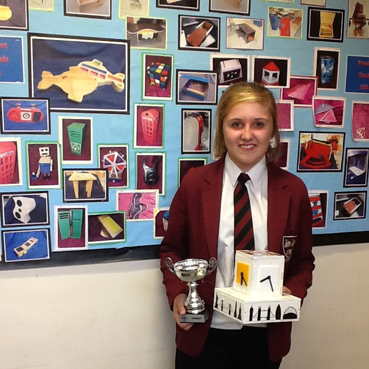 The winner for the KS3 category in product design was Year 9 student Chloe Burt who had designed and made a storage unit for jewellery, designed in the style of a mixture of twentieth century art and design movements .